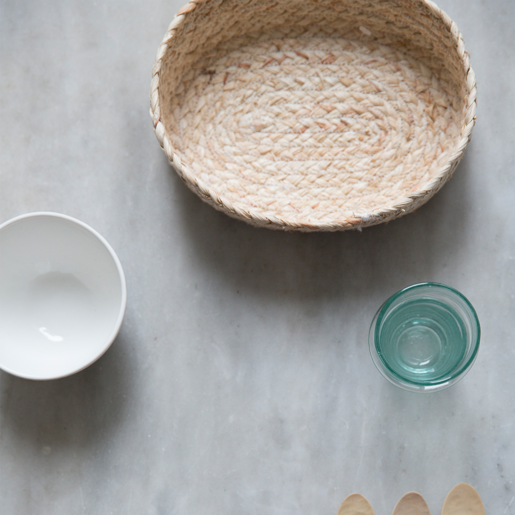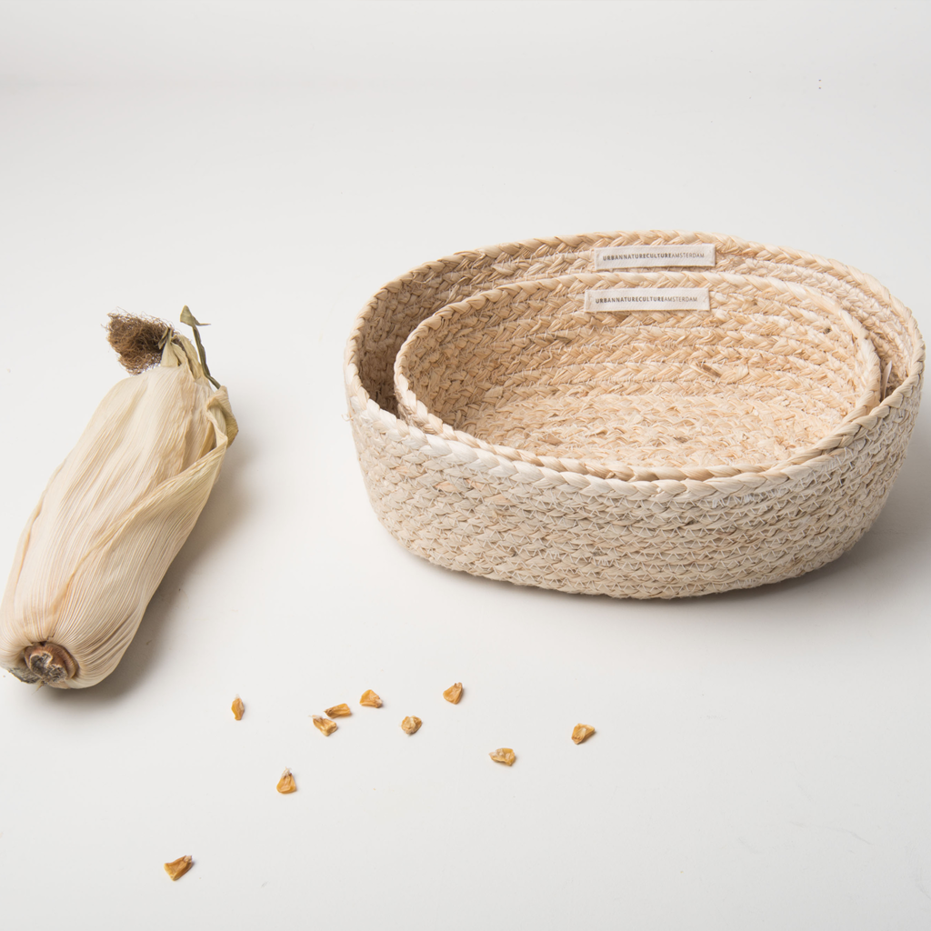 "Ständig auf der Suche nach umweltfreundlichen Möglichkeiten, die Dinge zu produzieren, die wir lieben – Urban Nature Culture hat diesen schönen, ovalen Korb aus den Resten von Maisblättern hergestellt. Eines der Wunder der Natur."