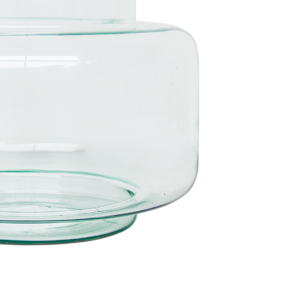 "Übrig gebliebenes Glas wird gesammelt, geschmolzen und erhält eine zweite Chance - um in diese schöne Vase verwandelt zu werden. Diese hier setzt ein mutiges Statement, perfekt für einen großen Blumenstrauß auf dem Esstisch oder eine Ansammlung von Luftpflanzen."