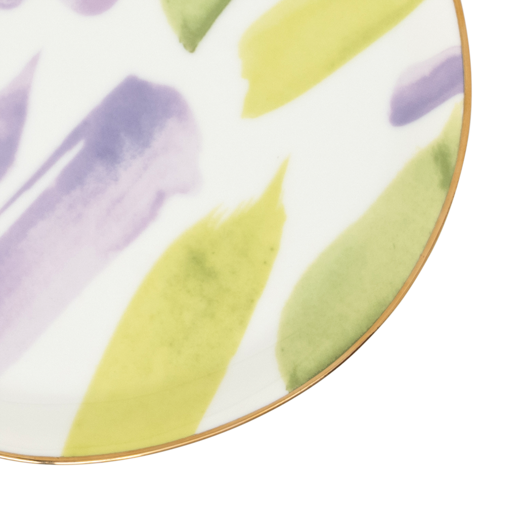 Lassen Sie sich von Urban Nature Cultures neuestem Design der Good Morning-Serie verzaubern. Der Kusha-Teller mit handgemaltem Goldrand ist mit einem vom Frühling inspirierten Motiv versehen – zarte Blüten und Blätter, die unsere Gedanken augenblicklich in den Frühling versetzen. Eine reizvolle Mischung aus Flieder, Limettengrün und hellem Grün verleiht diesem Teller neue Leichtigkeit und romantischen Charme. Nur von Hand spülen, um das handgemalte Gold zu schützen.