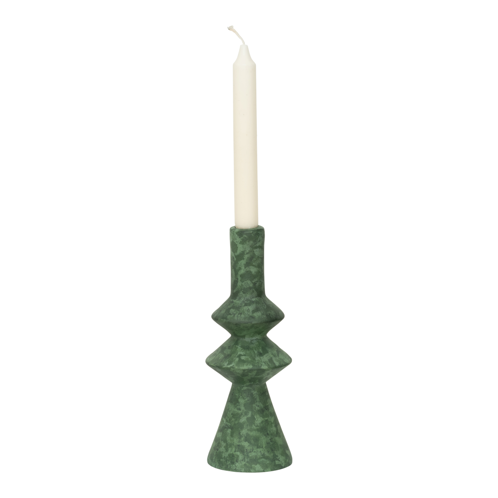 Geometry meets the organic, in Urban Nature Culture’s candle holder Mano B, made from the eco-friendly mixture of recycled paper pulp, natural gum and chalk powder – known as ecomix. Transformed into a timeless expressive design, carrying a matt, spotted green finish.