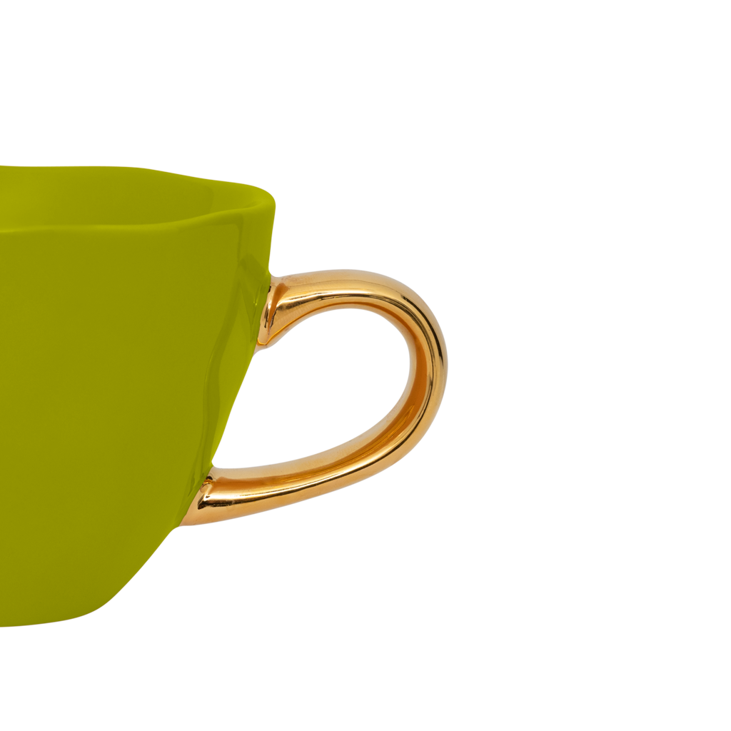 Part of the Good Morning Collection, this cappuccino cup in the cheerful shade split pea with its golden ear brings a playful touch to your table. Perfectly shaped for cappuccino or tea, these cups invite comfort to your daily rituals. A joyful piece of tableware that makes every sip feel special.
