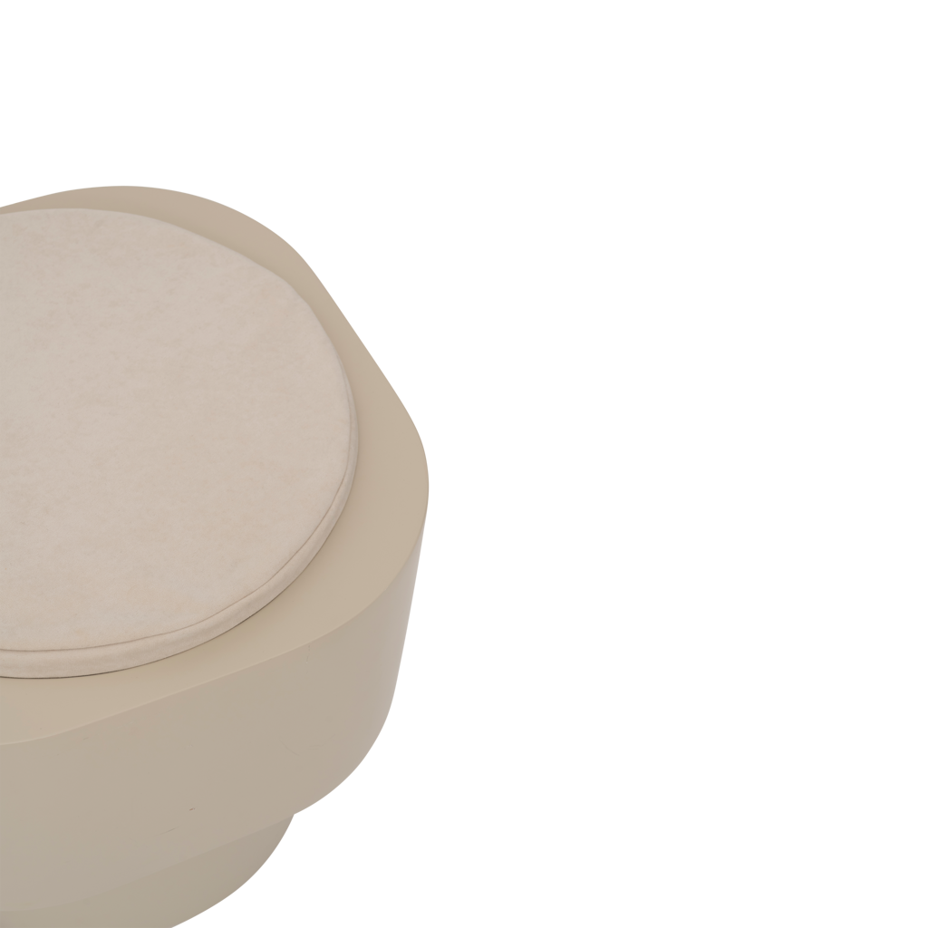 In soft pale khaki, a bold multifunctional side table/ pouf with rounded corners becomes a standout in any room. Effortlessly functional and stylish, it adds a grounded, contemporary vibe to your space.