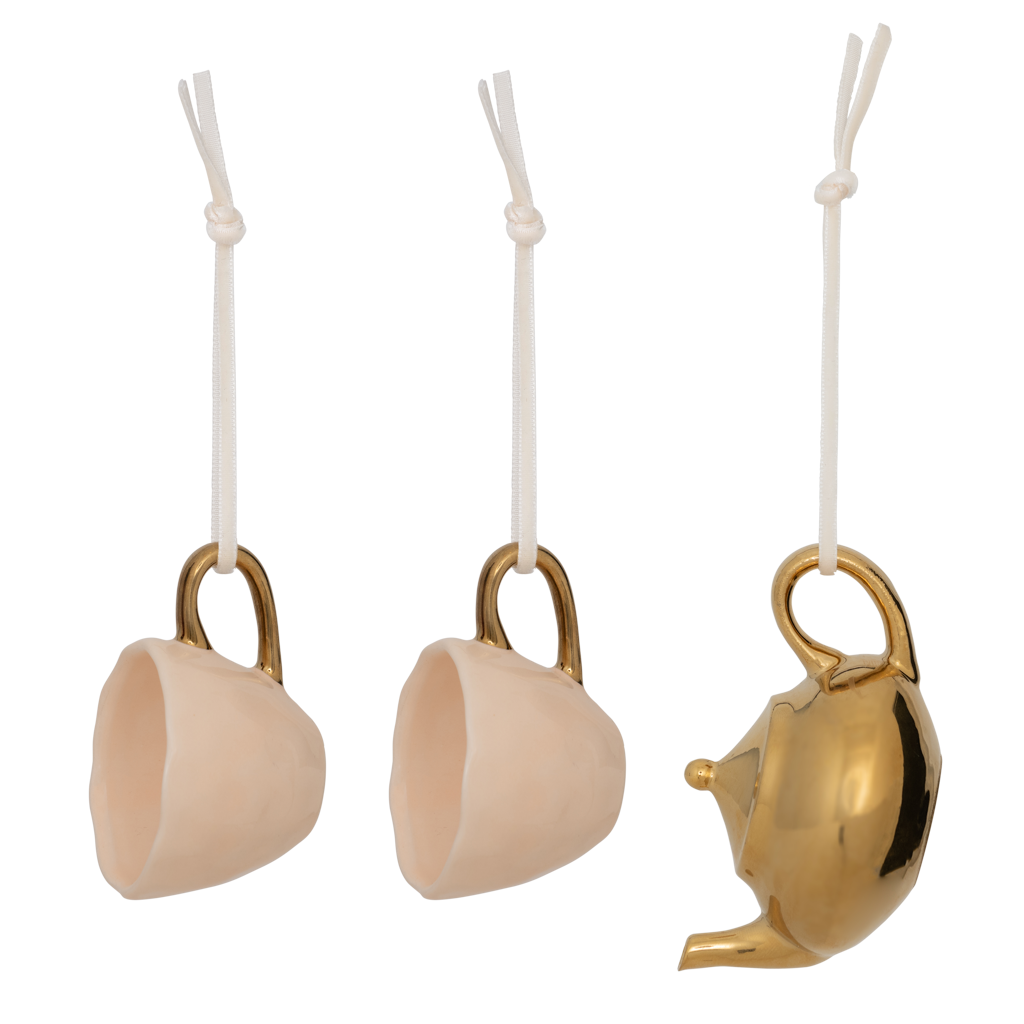 Christmas season is the ultimate challenge for any interior decoration lover. We decorate our homes in Christmas spirit and add things merry and bright, making sure the Christmas tree is the big statement piece of it all – a place to gather round with the family. Urban Nature Culture’s winter collection wouldn’t be complete without some Christmas decoration, so it proudly presents the UNC Good Morning Christmas ornaments. Three varieties of giftsets of ceramic Christmas ornaments based on the design of the brand’s beloved Good Morning series, including a golden teapot and 3 different cappuccino/tea cups in either golden or the classic old pink shade. A great gift for the avid tea addict, cappuccino lover or anyone who loves original Christmas ornaments in their Christmas tree.