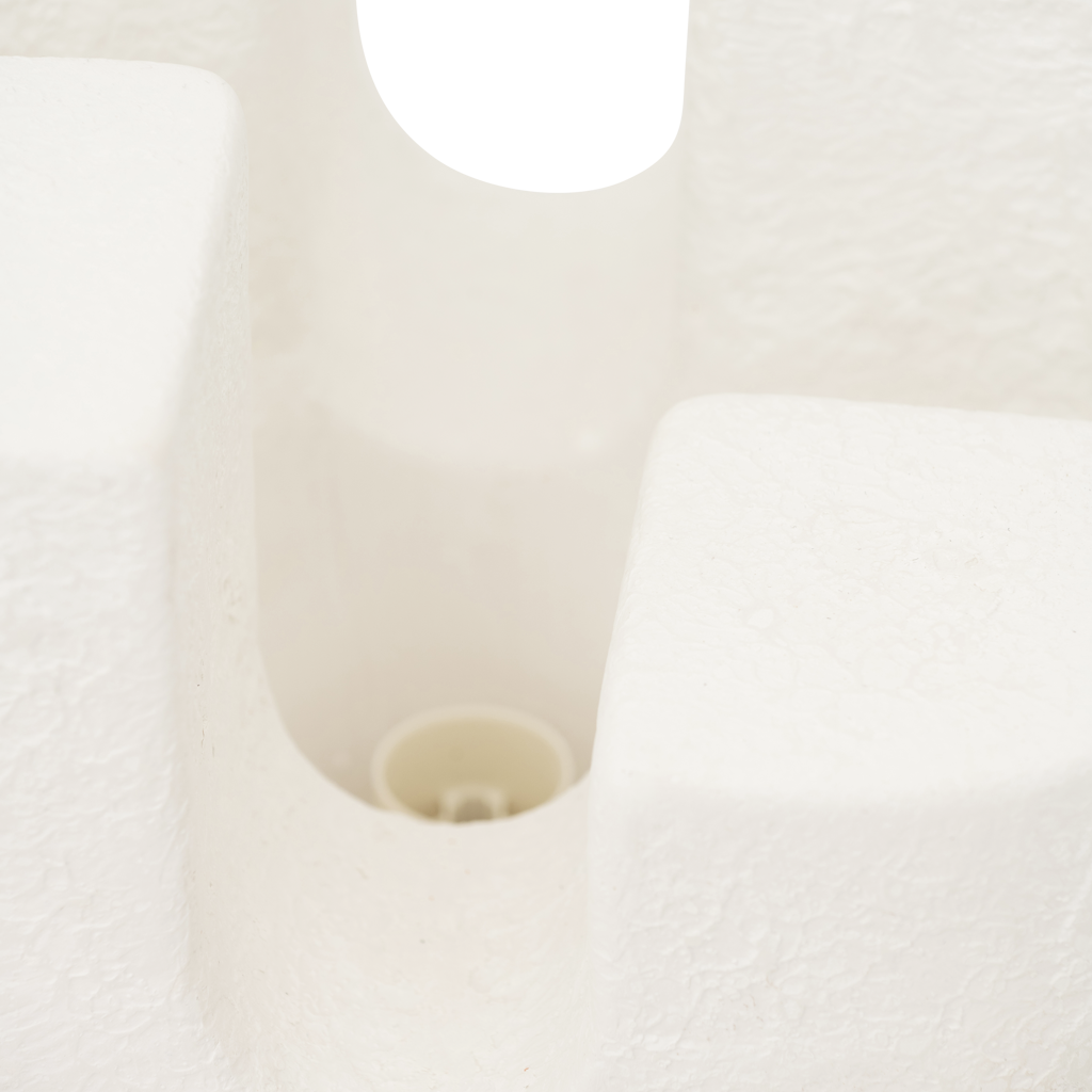 Table lamp Cuarto builds a bridge between functionality and art. Inspired by béton brut – the French term for raw concrete, which still carries all patterns and seams of the formwork. Cuarto is handmade in Portugal from ceramic, with a grainy, irregular, white finish. An abstract piece of art and a beautiful light – in one. A great companion for quiet nights in, resting your head, or hours spent planning your next adventure – it’s all about that balance in life after all.