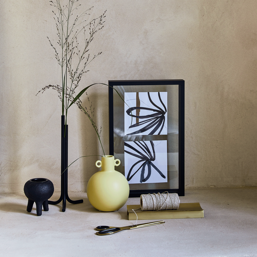 Une photo de vos proches, votre carte postale préférée, une œuvre d'art ou l'incrustation exceptionnelle qui l'accompagne – il n'est plus nécessaire de choisir, car nous avons maintenant un double cadre flottant. Peu importe ce que vous y mettez, cela devient une pièce maîtresse instantanée, disponible en naturel, or ou noir. Il se démarque dans votre salon, chambre, couloir ou partout ailleurs où il trouve sa place. Un excellent cadeau, pour vous-même ou un ami.
