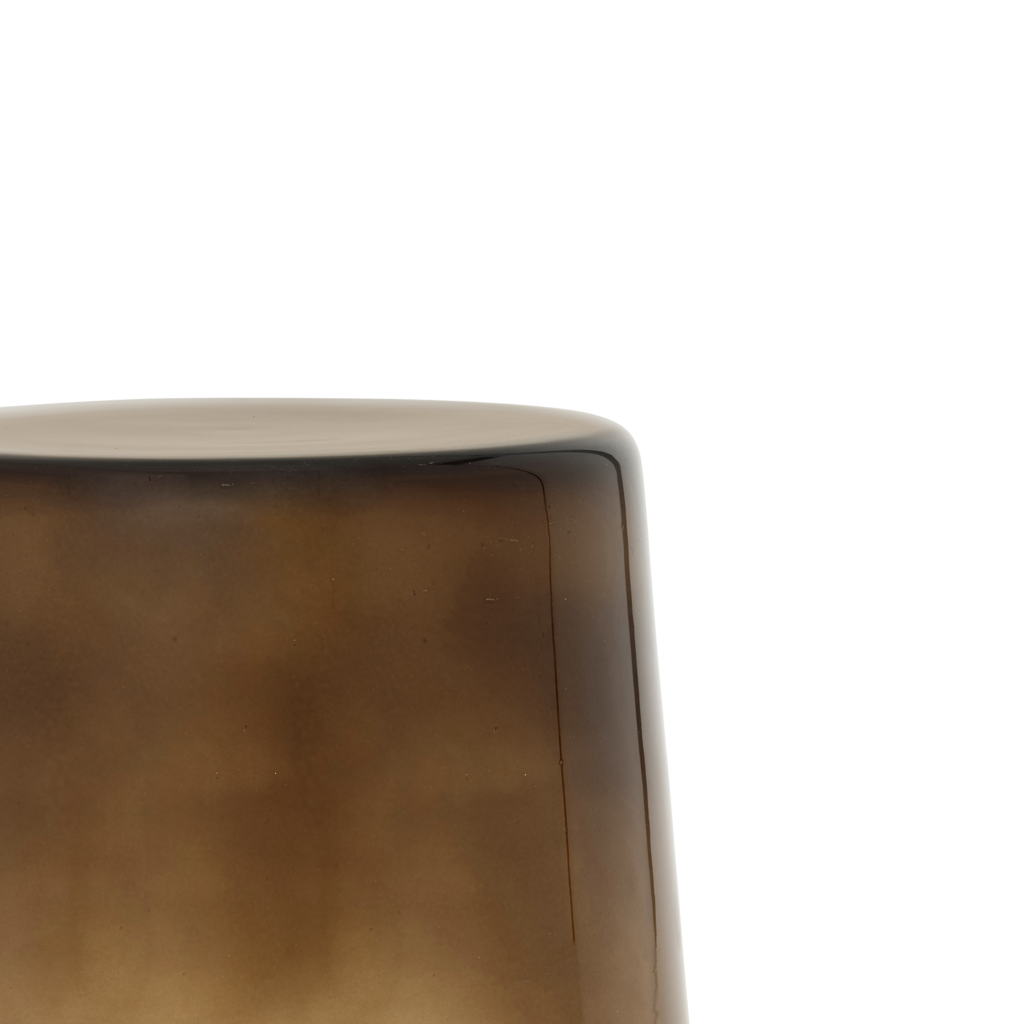 Une forme de cône assez simple en verre clair, transparent avec une finition vert éphémère ou marron cacao. Kai ajoute une touche colorée à votre maison. Laissez-le afficher l'une de vos plantes d'intérieur, une figurine abstraite, une nature morte en forme de vase à fleurs ou utilisez-le simplement pour tenir votre tasse de thé, pendant que vous faites une pause.