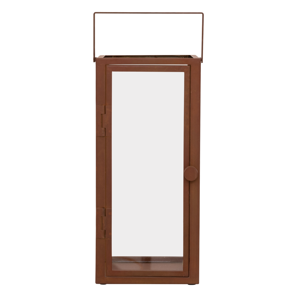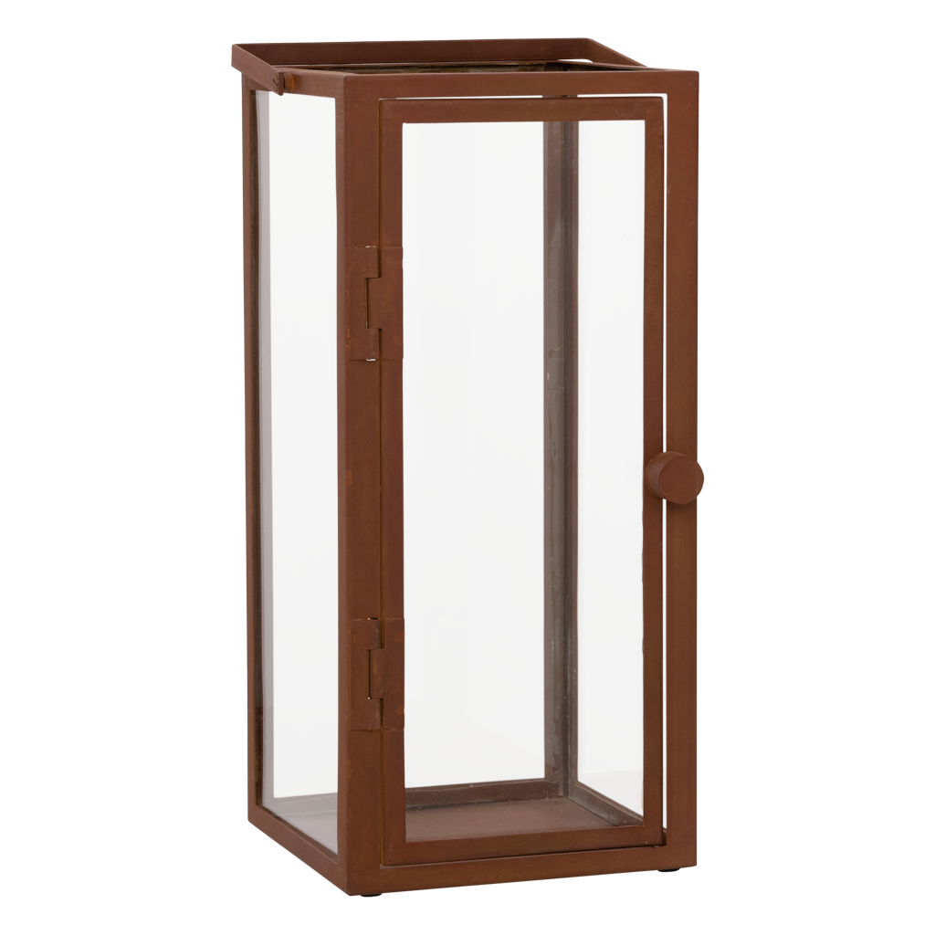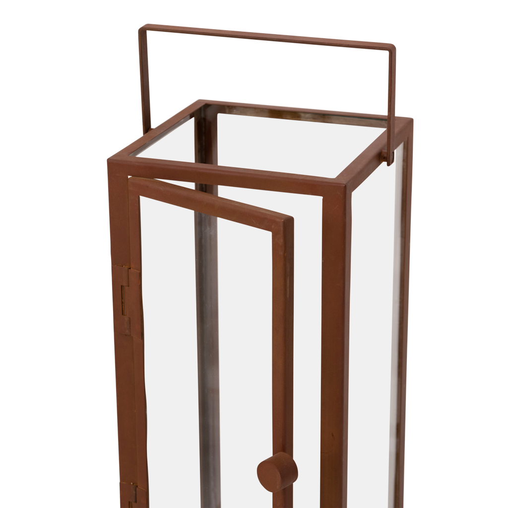 Faites briller une lumière en début de soirée, lorsque la lune se cache derrière un ensemble de nuages sombres, et profitez du calme de votre maison. Notre ouragan Celso, disponible en deux tailles différentes, aime vous accompagner et illuminer votre maison urbaine. Design moderne en fer, avec une finition en acier corten intemporelle, serrure magnétique sur la porte en verre et juste le bon jeu de lignes pour se démarquer dans n'importe quel intérieur urbain. Finition rouillée sur le métal : la couleur peut changer avec l'exposition à l'air et l'utilisation de l'ouragan.