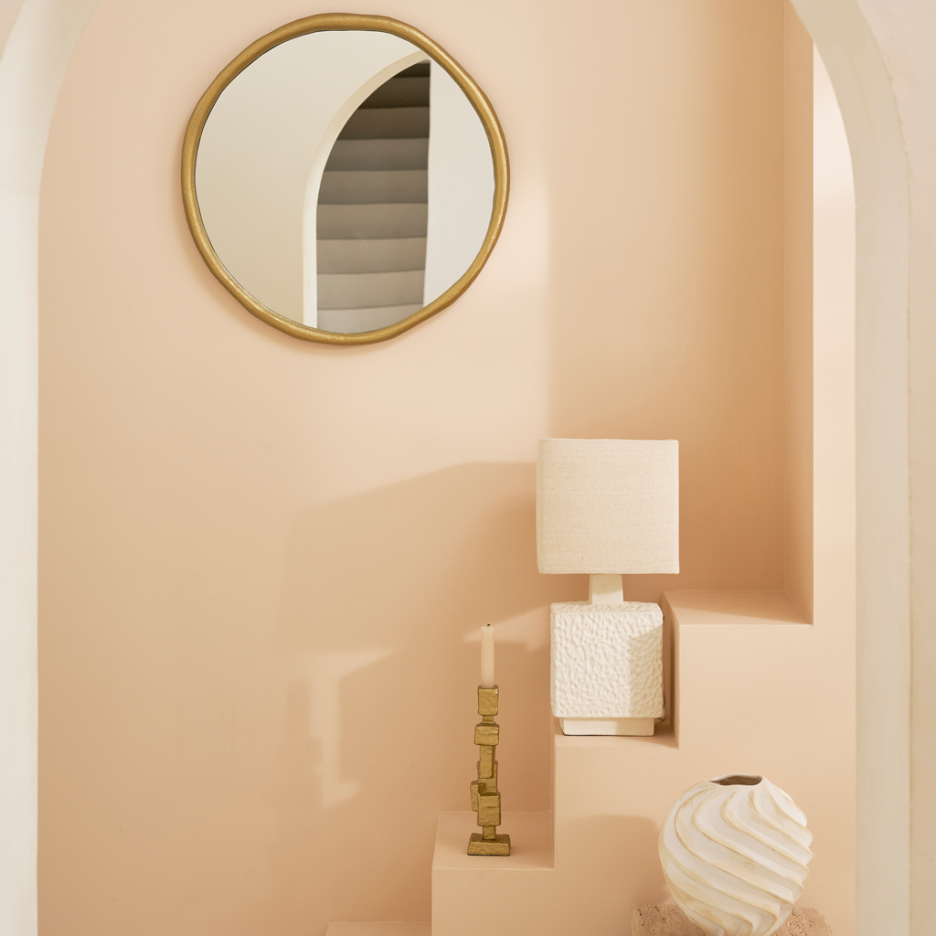 Miroir miroir, sur le mur... tu devrais t'aimer avant tout. Apprends à aimer ton reflet, apprécie ton sourire et tu pourrais bien découvrir que le miroir te sourit en retour. Urban Nature Culture est tout au sujet de l'amour – l'amour pour la nature, l'humanité et la façon dont ces deux peuvent créer les objets les plus beaux pour ta maison. Mirror Rox est un autre excellent exemple d'une pièce de déco qui continue d'inspirer. Son cadre en aluminium a une finition en laiton doré mat et est imparfaitement, organiquement rond avec une peau abîmée. Il a de l'élégance, un sens du luxe et illumine simplement la pièce – que ce soit ton salon, ton couloir ou ta chambre. Mesurant 60 cm de haut, Mirror Rox t'accueille toujours avec un sourire. Instructions d'entretien : nettoyer avec un chiffon humide.