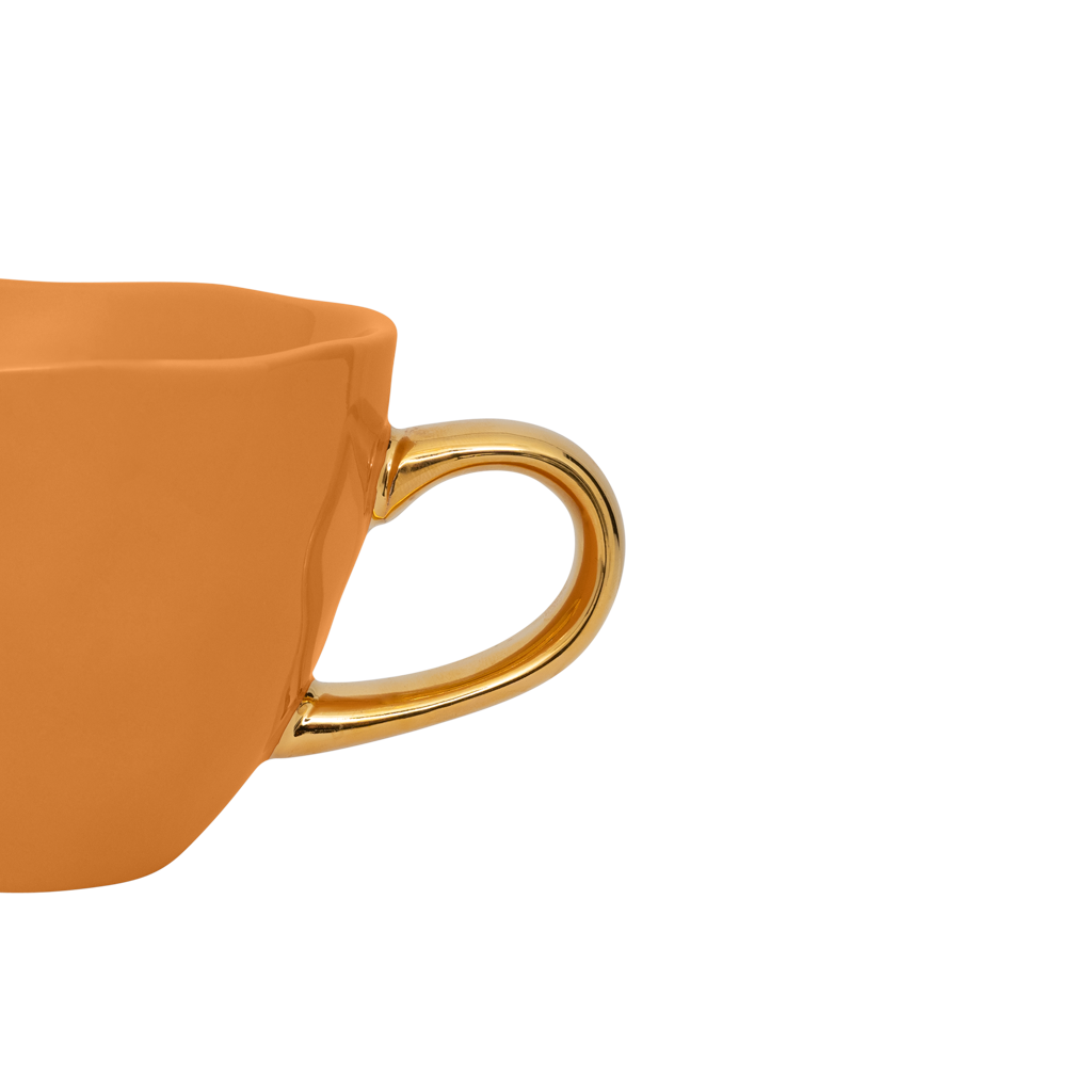 Niets brengt je zo in de flow van de dag als een stevig, gezond ontbijt. Vaak zijn het de simpele, alledaagse dingen in het leven die ons gelukkig maken – dat kan in de kleinste, meest eenvoudige dingen zitten. Zoals een heerlijk ontbijt met Urban Nature Culture’s Good Morning serie. Nieuw in deze aardewerk serie zijn de karamelkleurige borden en Kopjes, met dat herkenbare gouden randje. Deze Coffee Kopje heeft een warme tint – voor een gezellige kick-start met je dagelijkse cafeïne shot. Onderhoudsinstructies: Alleen handwas om het handgeschilderde goud te beschermen."