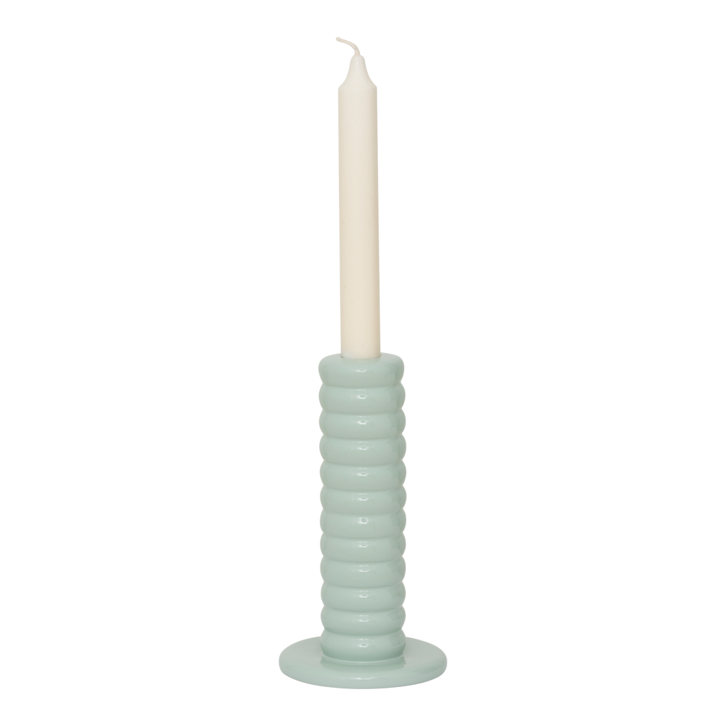 Breng karakter en speelsheid in huis met deze kandelaar in de kleur sea foam. Elegant van kleur maar uitgesproken van vorm, met een uitgeproken ribtextuur die echt een statement maakt. Een gedurfd ontwerp dat persoonlijkheid en sfeer toevoegt aan je interieur.