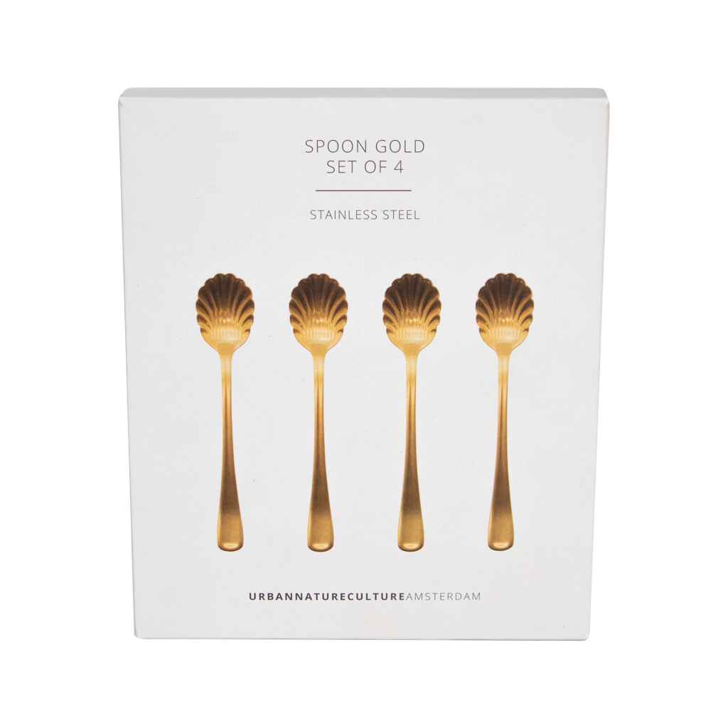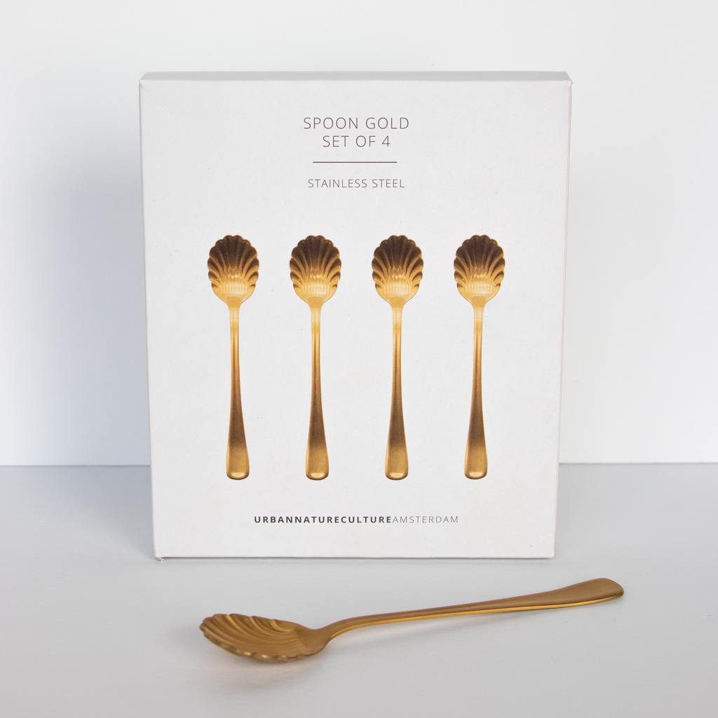 Soms komen goede dingen in kleine verpakkingen. De gouden lepels van Urban Nature Culture, verkrijgbaar in een cadeauverpakking van vier, zijn een geweldig geschenk voor fervente koffieliefhebbers, theedrinkers en taartliefhebbers. Gemaakt van roestvrij staal en gevormd als kleine schelpjes die aan de kustlijn te vinden zijn, zullen ze als eerste uit de besteklade worden gehaald – wacht maar af.