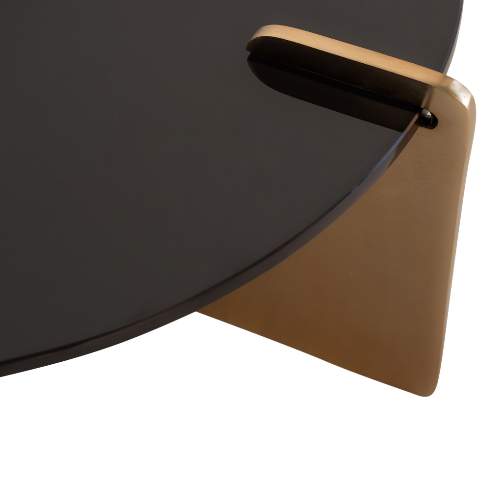 Salontafel Linn bestaat uit een combinatie van roségoudkleurige metalen poten met een ondoorzichtig glazen tafelblad in een rijke fudge-kleur en haalt zijn inspiratie uit verschillende decennia design. De duurzame, hoogwaardige materialen zijn gemaakt om lang mee te gaan en vormen samen een functioneel middelpunt voor elke woonkamer.