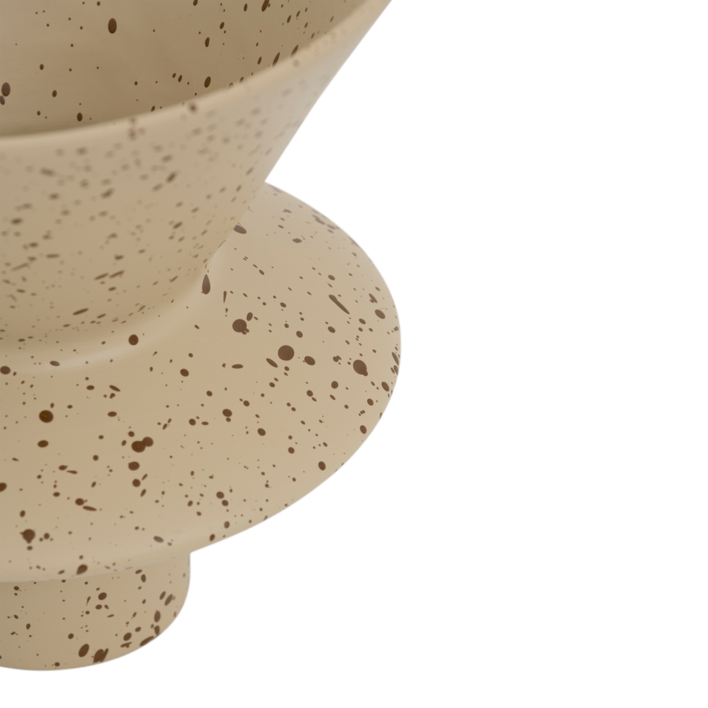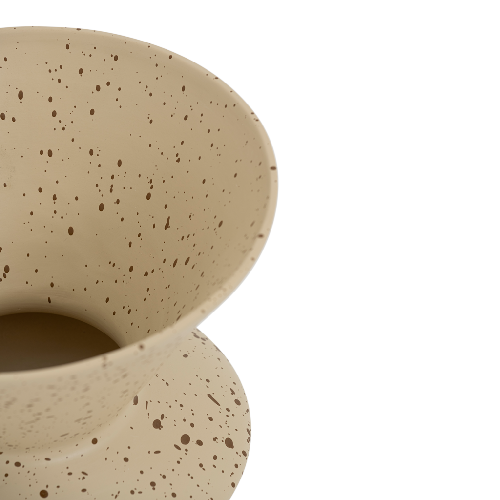 Een prachtige vaas in een neutrale, warme starfishkleur, gemaakt van een mix van gerecycled en nieuw keramiek. De uitgesproken spikkel geeft de vaas dynamiek. De moderne, geometrische vorm maakt het product uitgeproken en expressief.
