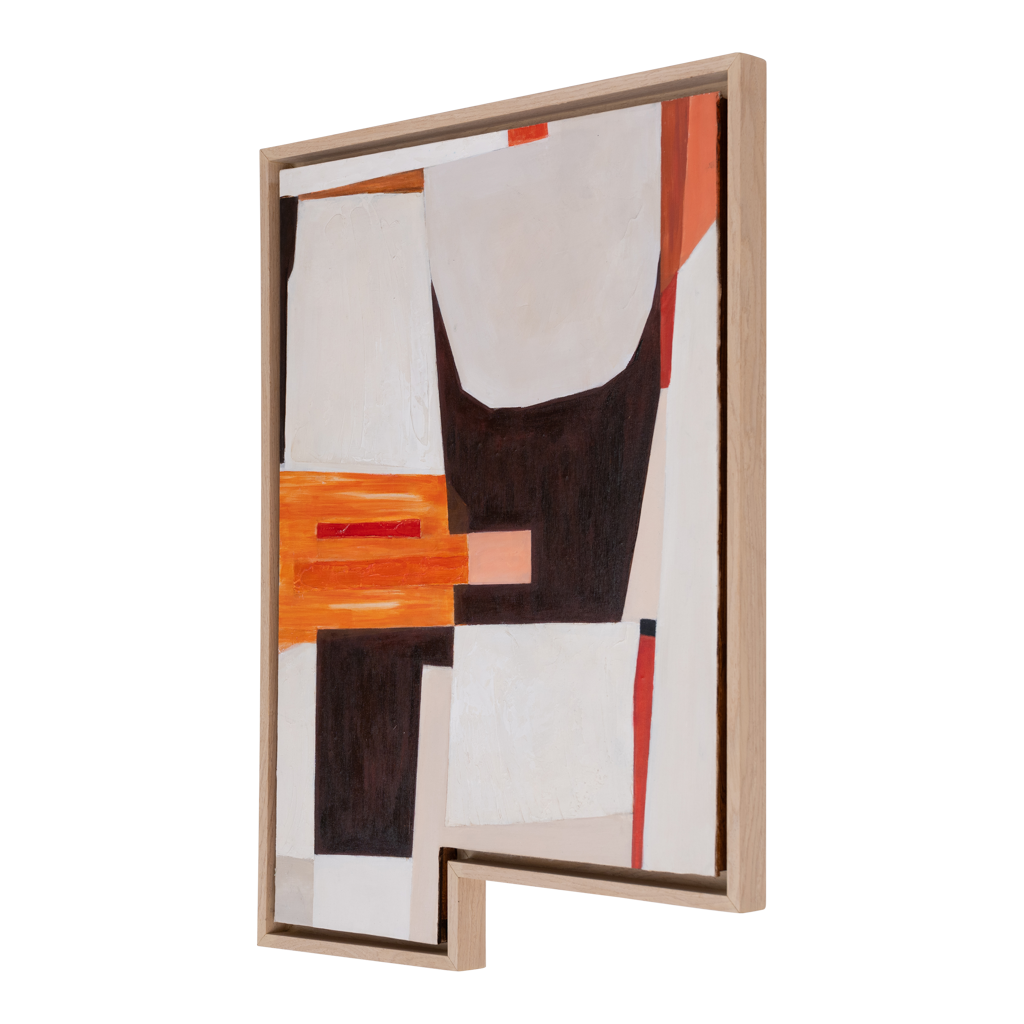 Abstracte kunst daagt je verbeelding uit en voegt een artistiek tintje toe aan elk huis. Urban Nature Culture's muurdecoratie Julio is een uniek, handgeschilderd kunstwerk. Zijn patchwork, in een eikenhouten frame met uitsparing, waarin roodachtig donkerbruin en gebroken wit gecombineerd wordt met verschillende tinten oranje en rood.