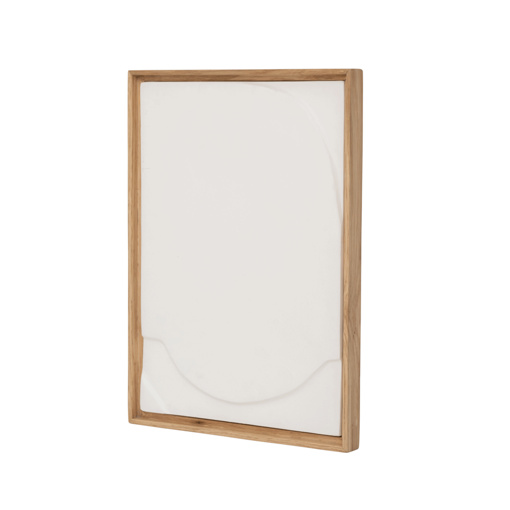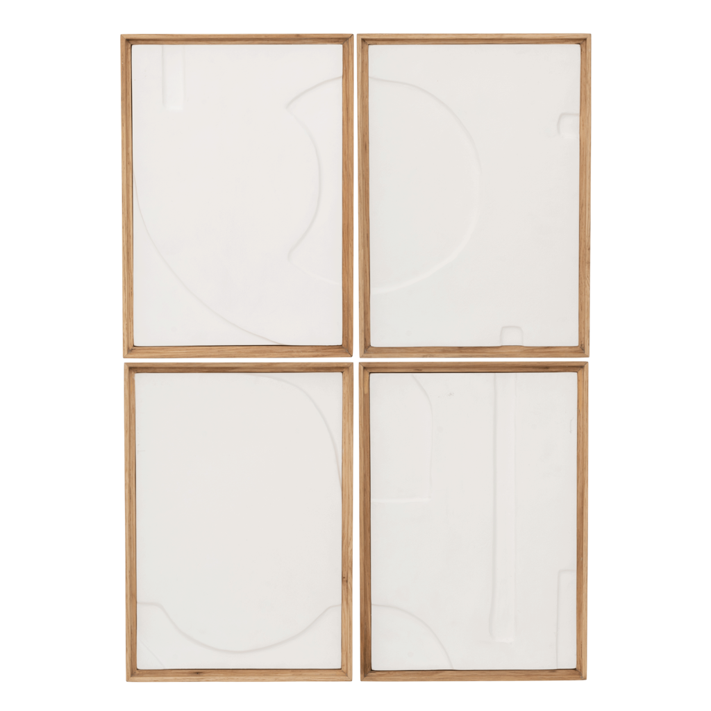 “Art is an irreplaceable way of understanding and expressing the world.” Dana Gioa | Though nature carries an endless palette of colours and shades, it’s the calm and softness of it all that’s been captured in Urban Nature Culture’s Graphic Geo four-panel. Each of the four wall deco’s have been made with paper mache, of which the beautiful, off-white part is embossed and represents a daring, intuitive geometric shape. Together, they form a sense of unity – but these beauties have everything needed to stand out by themselves as well. You decide if you wish to combine them as a whole, mix and match them into a different composition once in a while, or find a unique spot for all of them. Including oak wooden frame.
