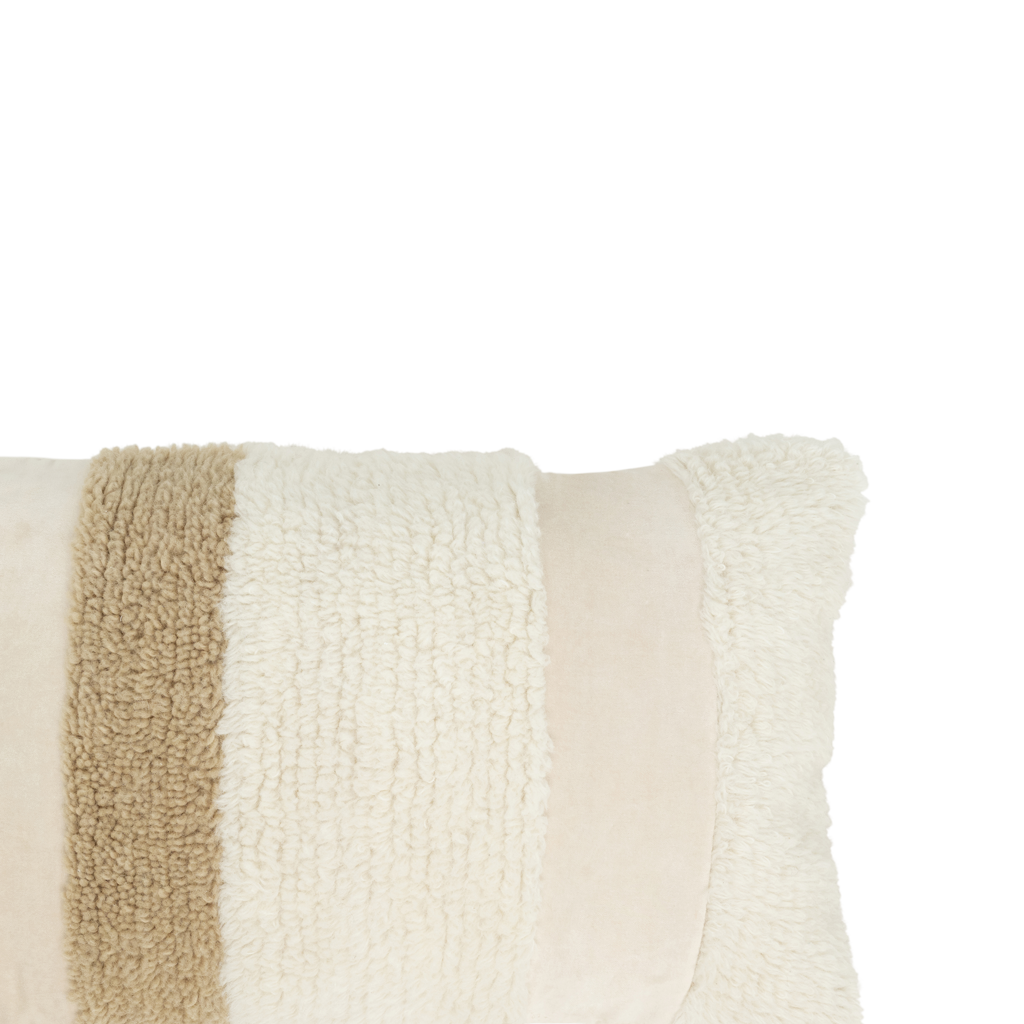 Comfy, cuddly and irresistibly soft – meet Urban Nature Culture’s handmade cushion Noah. An artisan-made cushion which combines cotton velours with hairy, woolen strips. Different materials and textures in natural shades join forces – as cushion Noah adds softness, tactility and character to your interior. Living room, dining bench, bed or favourite armchair – the soft fabrics and inspiring design of cushion Noah makes your house a home.
