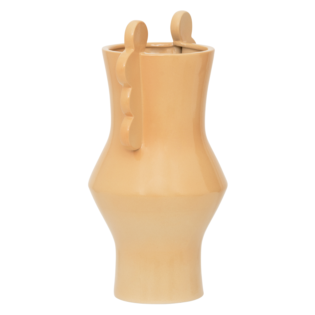 Art is freedom, breaking free from standards, colouring outside the lines. Following the need to express, while being one with nature, Amsterdam-based brand Urban Nature Culture proudly brings you ceramic vase Circulo. Its design is as elegant as it is quirky, with its scallop ears and shiny waterglaze finish. A product of Indian hand craftmanship, Circulo connects art to everyday objects, ever keeping sustainability and green ways of producing in mind. Add flowers, or simply let it stand out on its own. Available in pumpkin or pale green. This product is made of 50% recycled ceramic and 50% virgin clay, GRS certified (Global Recycled Standard).